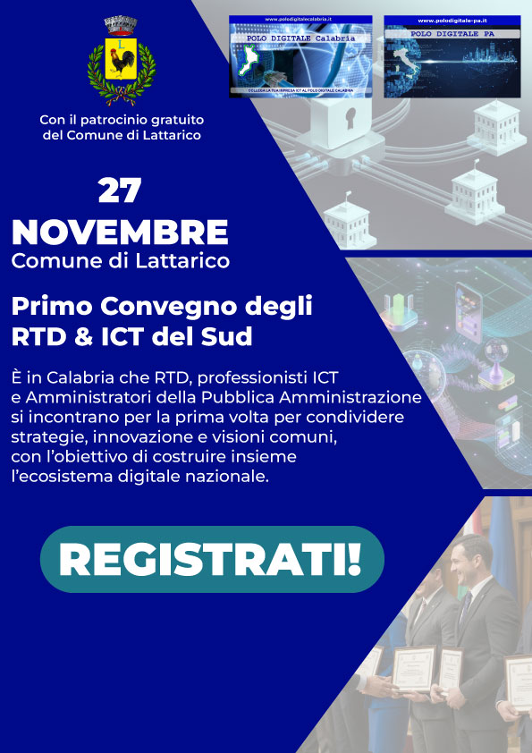 È in Calabria che si svolge il primo evento in Italia dedicato agli RTD, ai professionisti ICT e agli Amministratori della Pubblica Amministrazione del Mezzogiorno.