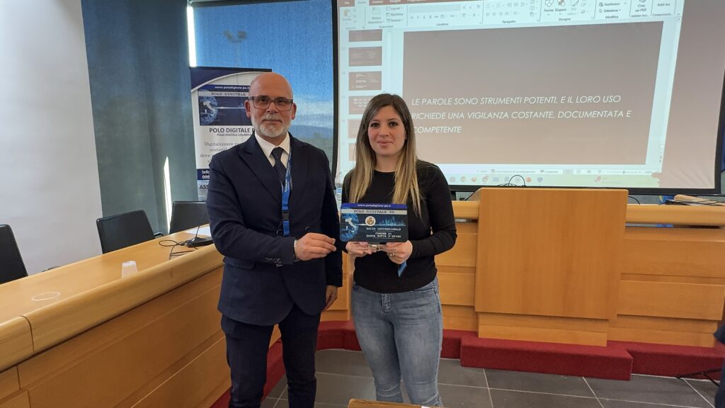 Un altro momento significativo del convegno è stato la consegna del tesserino di appartenenza a Benedetta De Vita, RTD del Comune di Catanzaro, che da poco è entrata a far parte della nostra community. Un gesto simbolico che conferma la crescita costante della rete dei Responsabili della Transizione al Digitale e il valore dell’adesione di nuove professionalità pronte a contribuire allo sviluppo dell’ecosistema digitale calabrese.